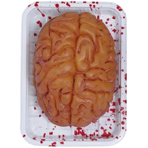 Bandeja con cerebro sangriento