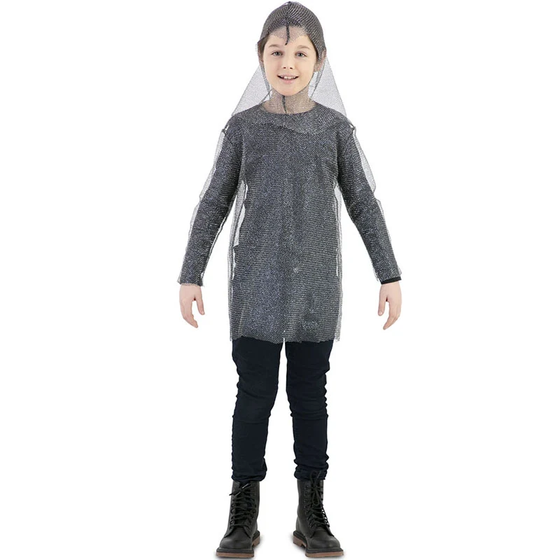 Vuelve tu look único y divertido gracias a esta Cota de Malla medieval para niño, los complementos de disfraces son los detalles que marcarán la diferencia y te permitirán conseguir un disfraz personalizado. Con la malla de armadura medieval y verdugo talla infantil el traje de Carnaval se convertirá en diferente al resto a la vez que añades un toque de originalidad. Dale la nota definitiva a los disfraces de Carnaval con la compra de esta cota de malla para niño imitando una armadura de soldado de la Edad Media y seguro que aciertas de forma fácil y económica completando tu atuendo con un accesorio para disfraz de la mejor forma posible. Incluye casaca y capucha. Disponible en 4 tallas diferentes.