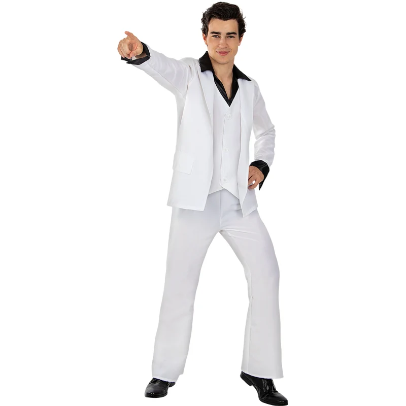 Métete en la pista más legendaria con el Disfraz de Años 70 de Fiebre del Sábado Noche para hombre