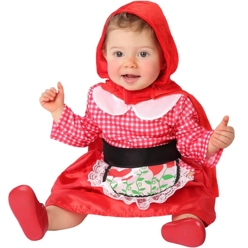 Nos hemos preocupado de contar con lo necesario para convertir a vuestro bebé en Cuento Caperucita Roja de forma súper original y adorable con este simpático disfraz para bebés. Si quieres hacer unas fotos graciosas para el recuerdo, o asistir a su primera fiesta temática disfrazado de Caperucita roja con este nuevo fiesta de Carnaval para bebé seguro que no pasará desapercibido. Compuesto por capa con capucha, vestido y delantal y disponible en 2 tallas diferentes para acoplarnos a los más pequeños de la casa. Seguro que la idea del nuevo disfraz de Cuento Caperucita Roja de bebé le permitirá dejar a todo el mundo boquiabierto en su primera fiesta de Carnaval, una sesión de fotos, espectáculos de fin de curso en la guardería o simplemente yendo a juego con sus papás imitando el look de Caperucita y el Lobo de forma realista. Compra este original traje de Cuento Caperucita Roja bebé cómodamente desde casa en nuestra tienda online.