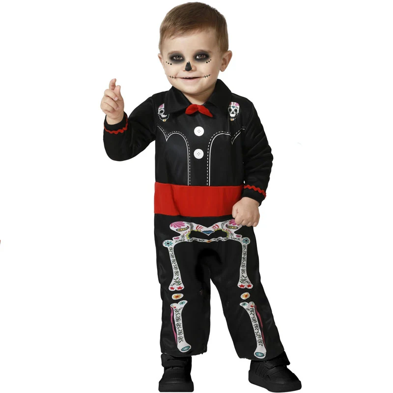 Convierte a tu bebé en Esqueleto Catrín fácilmente gracias a este nuevo disfraz terrorífico para bebés. Llega el tan esperado 31 de octubre y todo el mundo anda buscando ideas para el disfraz de Halloween la opción para los más pequeños de la casa y recién nacidos de disfrazarlos de esqueleto lleno de huesos con este traje de Halloween para bebé que contiene mono y está disponible en 2 tallas diferentes suena de miedo para celebrar su primera fiesta de Halloween, un desfile de miedo en el parvulario, unas fotos adorablemente terroríficas para el recuerdo… No tenemos ninguna duda de que el nuevo traje de simpático esqueletito para bebé será objeto del babeo de abuelos y del resto de familiares y forma parte de nuestra amplia colección de disfraces de Halloween para bebé. Compra este original disfraz de Esqueleto Catrín bebé para Halloween con el que transformarlo la noche más oscura del año y conseguirás que se lo pase de miedo.