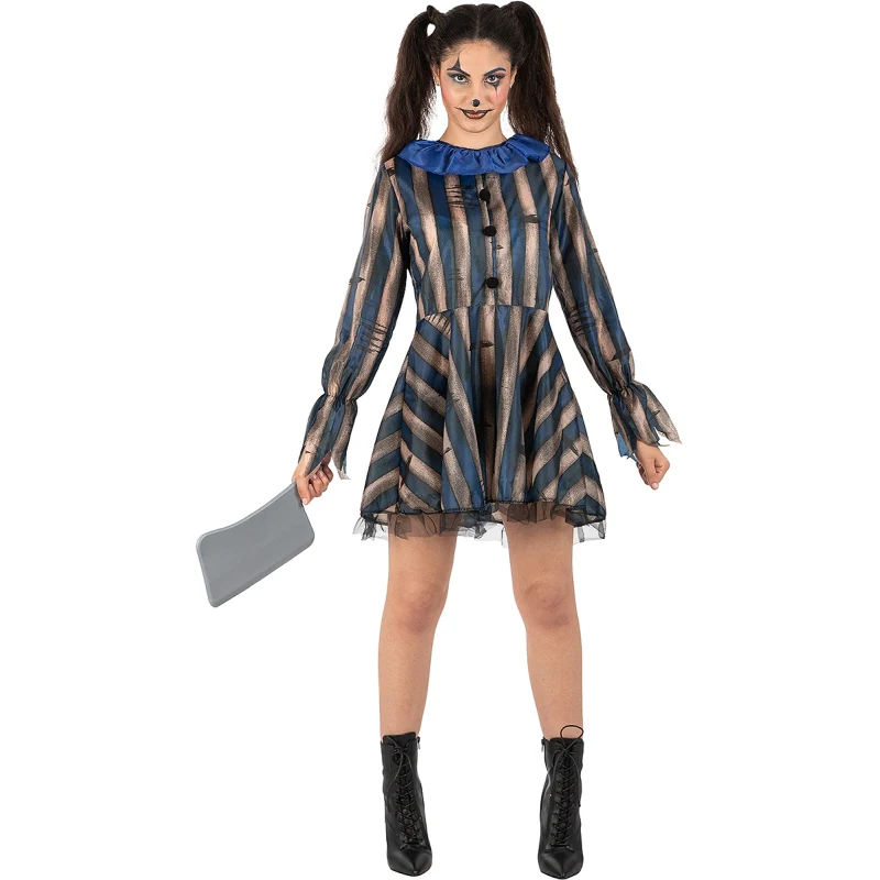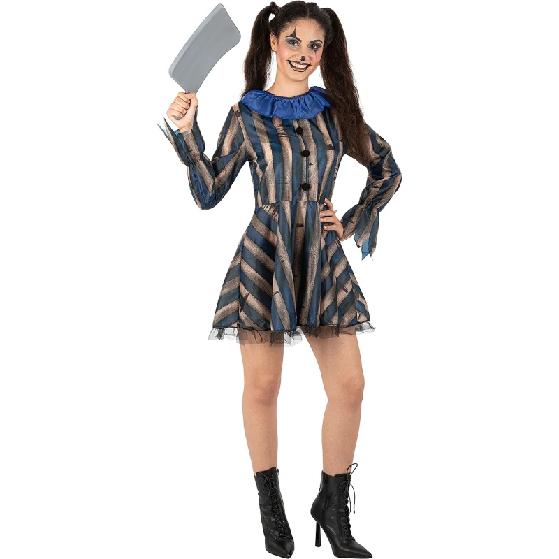 En cada noche de Halloween surge la oportunidad de ir más allá y sacar a relucir tu lado oscuro con el disfraz de Payasa Terrorífica para mujer. Imagina llegar a una fiesta de disfraces de miedo y sembrar el pánico solo con tu mirada y ese vestido de rayas perturbadoras que combina a la perfección con tu actitud. Este disfraz te invita a protagonizar tu propia historia de terror, conquistando todas las miradas y logrando que nadie olvide tu aparición. Si buscas destacar y dejar huella en cualquier evento, este vestuario es lo que necesitas. Descubre más ideas en nuestro catálogo de disfraces de Halloween.