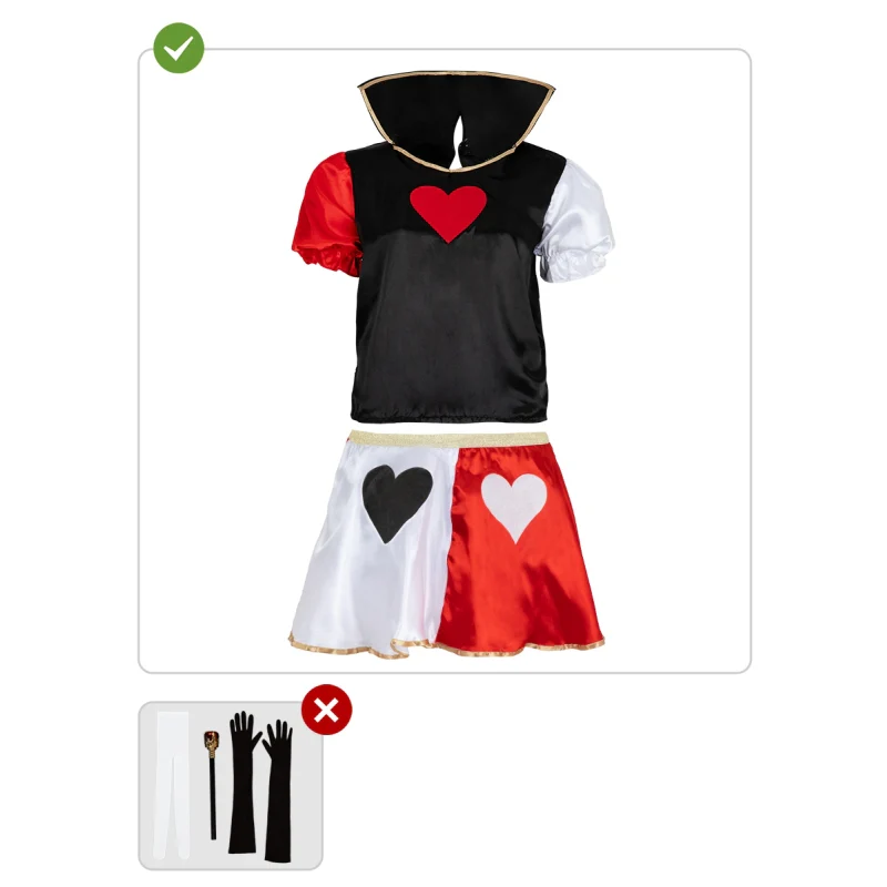 Haz que tu próxima fiesta sea memorable. Elige un disfraz que marque la diferencia y conviértete en la protagonista de la velada. Reserva ya tu Disfraz de Reina de Corazones Corto para mujer y vive la experiencia de no pasar desapercibida ni un solo instante.